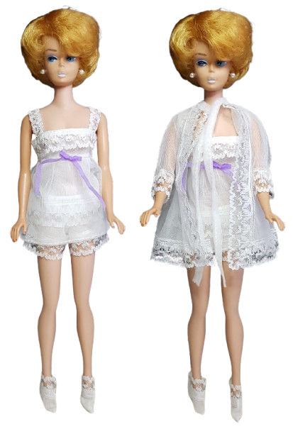 Barbie Light´n Lazy #3339, Mattel, 1972. Ett helt otroligt fint komplett set (NM). Intakt resår i trosorna. Linnet knäpps bak med tryckknapp. Se fler bilder, dockan ingår ej i köpet.