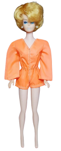 Barbie Tangerine Scene #1451, Mattel, 1970. Ett mycket fint komplett set. Skorna märkta Japan. Både top och kjol knäpps bak med tryckknappar. Se fler bilder, dockan ingår ej i köpet.