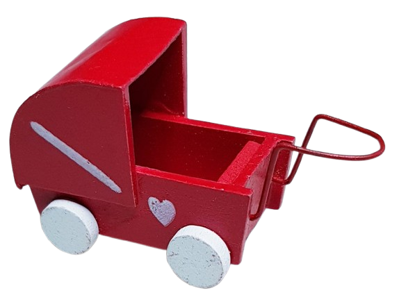 Dockvagn av rödmålat trä.