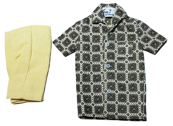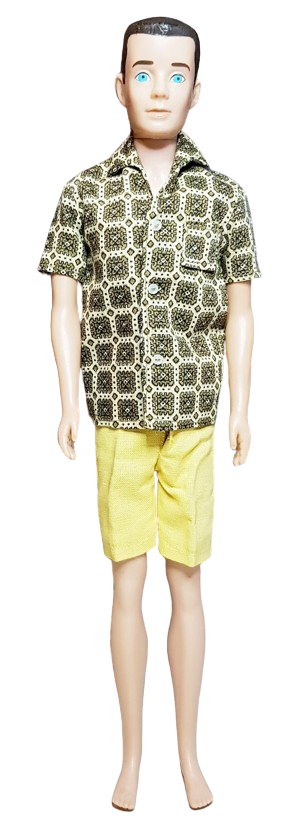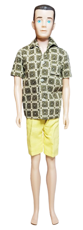 Ken Pak Loungin Around, Mattel, 1964. Ett komplett set i mycket fint skick (NM). Skjortan knäpps fram med tryckknapp. Shortsen har gylf och tryckknapp. Se fler bilder, dockan ingår ej i köpet.